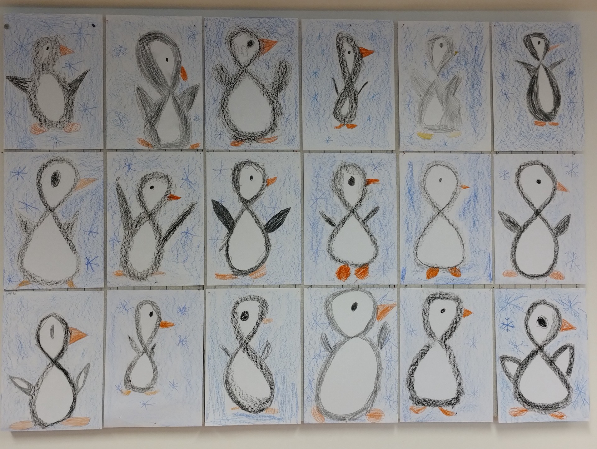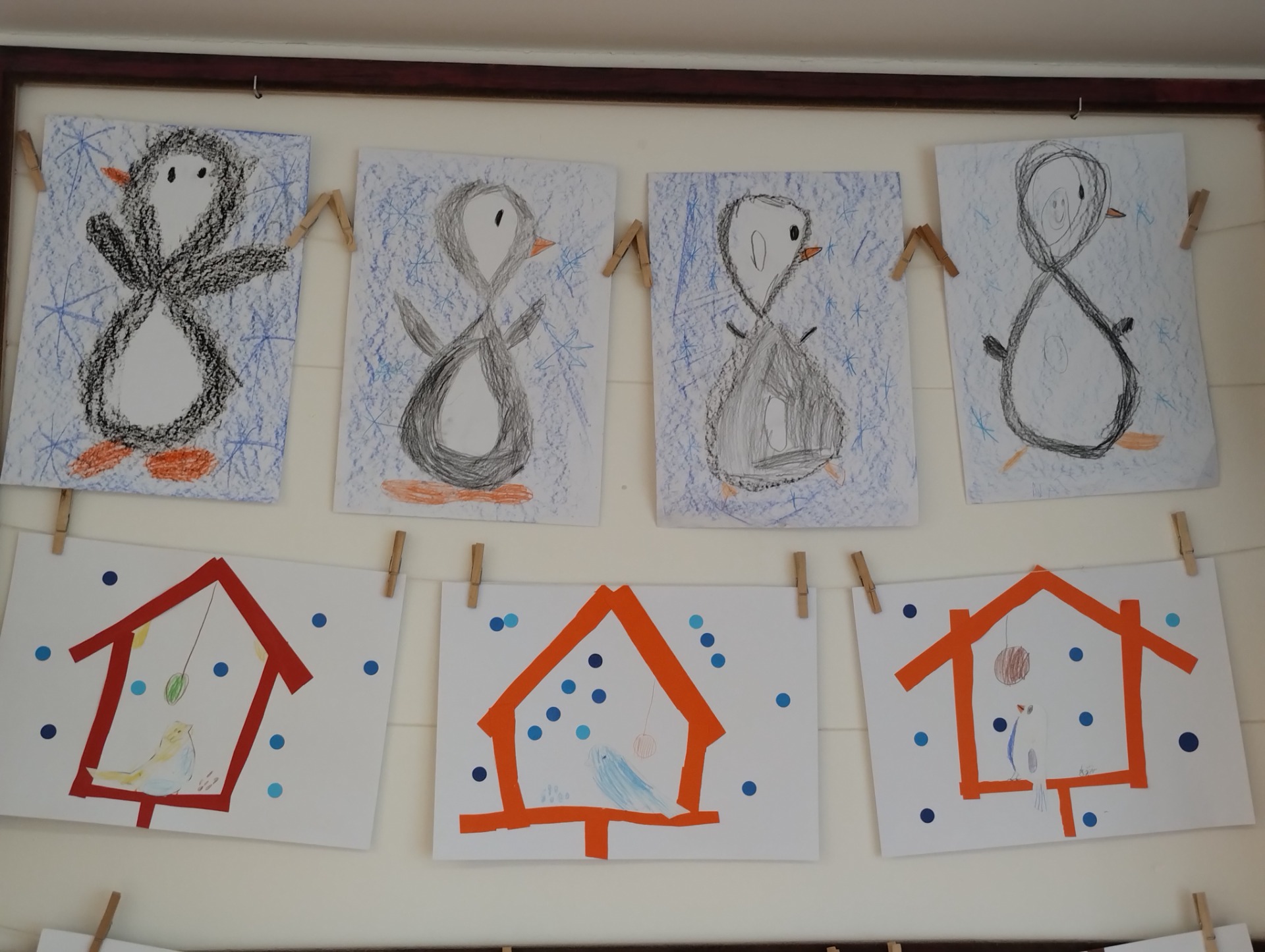 Tento týden jsme si v družině užili tvořivé odpoledne – děti kreslily tučňáky pomocí osmiček a vznikly opravdu krásné obrázky. Všem se práce moc povedla.
