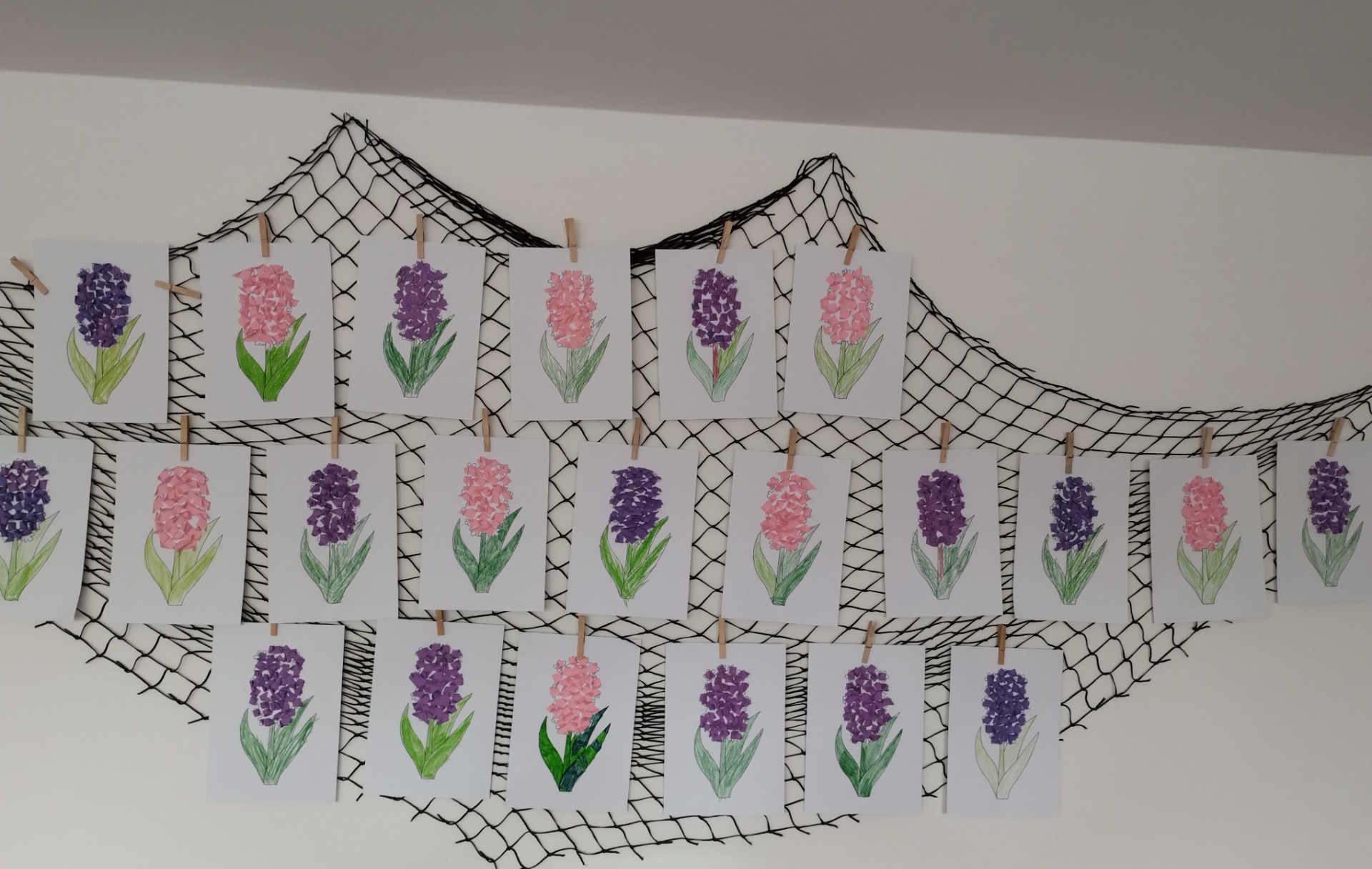 Děti pracovaly na pracovních listech – poznávání jarních květin. V družině se tomuto tématu teď hodně věnujeme. Společně jsme také vyráběli hyacint z papíru – děti skládaly papír do tvaru květu. Odpoledne jsme vyrazili na vycházku na Skálu, kde jsme pozorovali přírodu a povídali si o jarních změnách, obdivovali jsme sněženky a děti si na ně i sáhly, aby cítili jak jsou křehoučké.