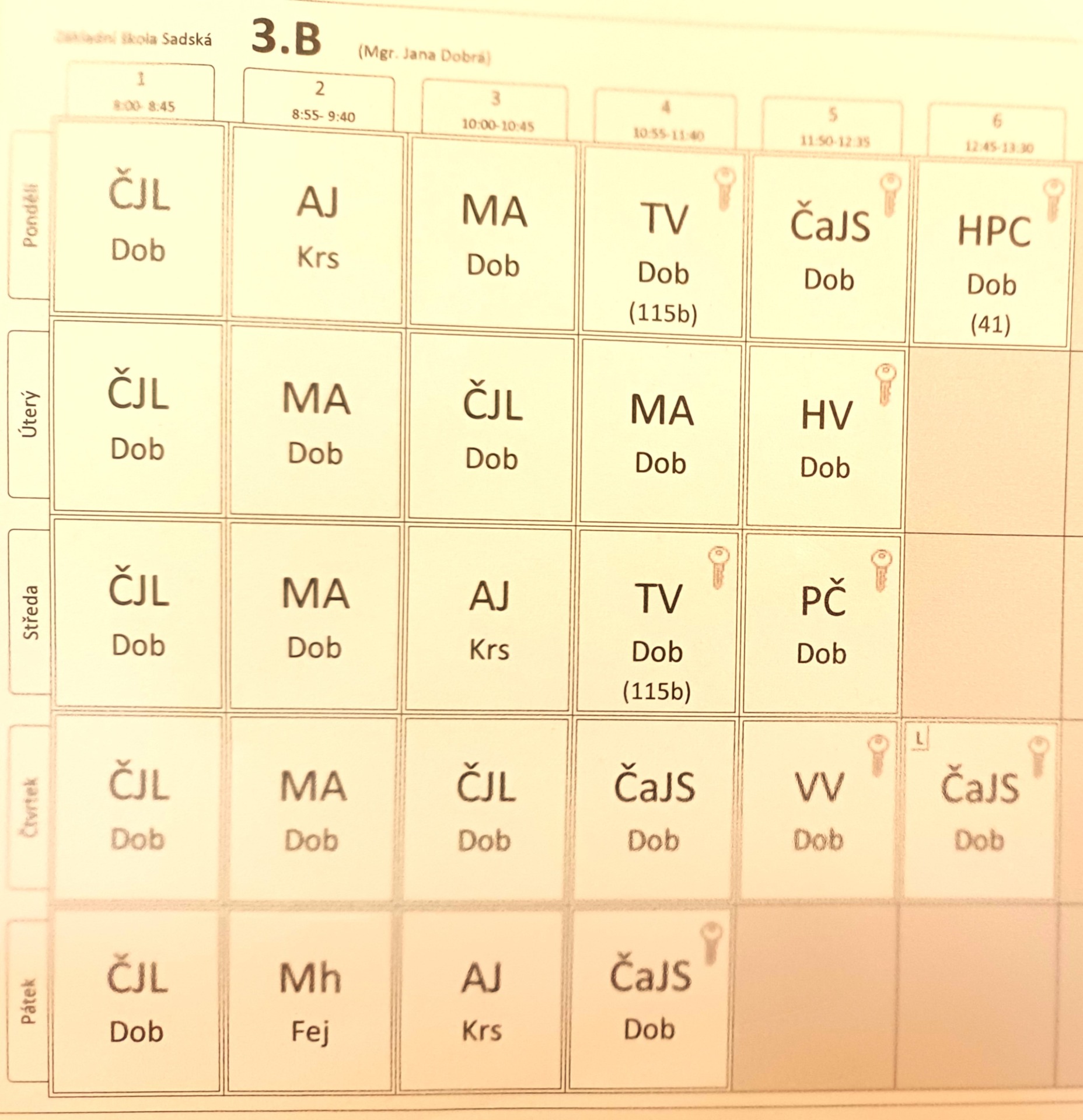 Od zítřka probíhá již výuka dle rozvrhu a vzhledem k dnešnímu úrazu paní učitelky Polačkové bude v naší třídě i část dětí ze 3.A až do odvolání.