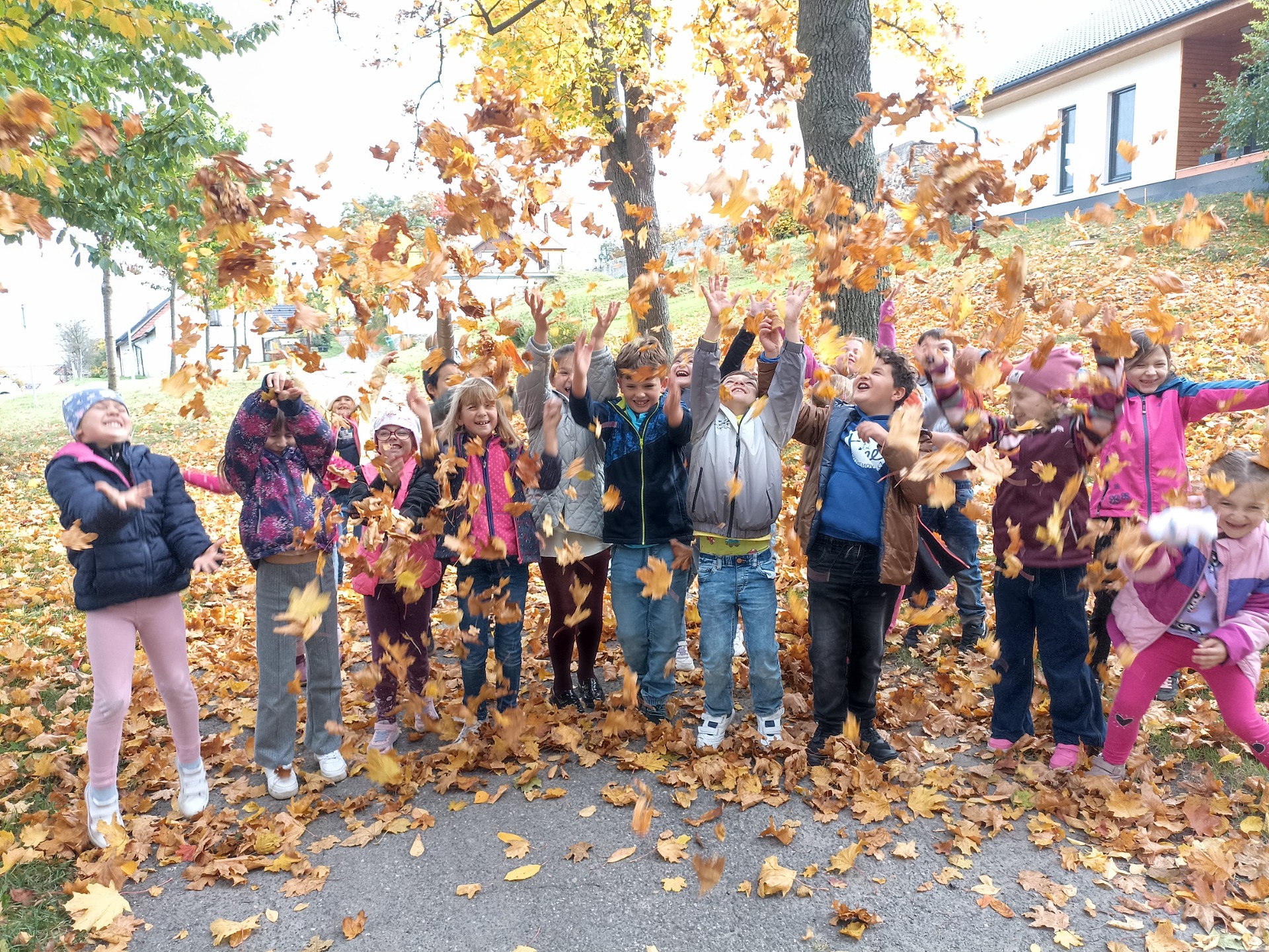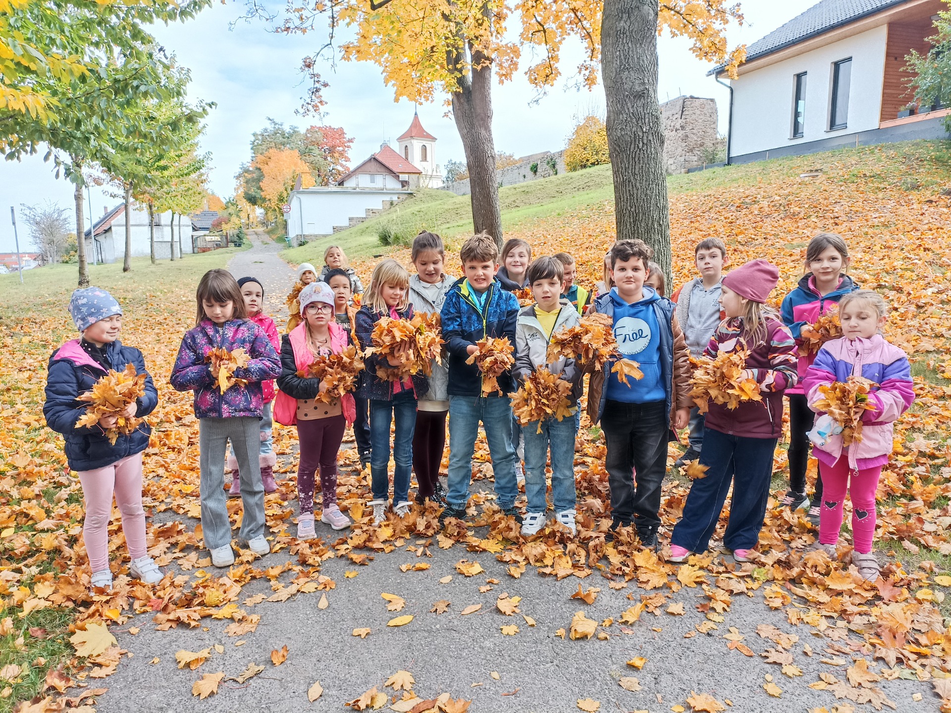 Rádi chodíme na přírodovědné procházky, kde pozorujeme, jak se příroda halí do podzimních barev. Cestou sbíráme přírodniny, které potom využíváme na vyrábění.