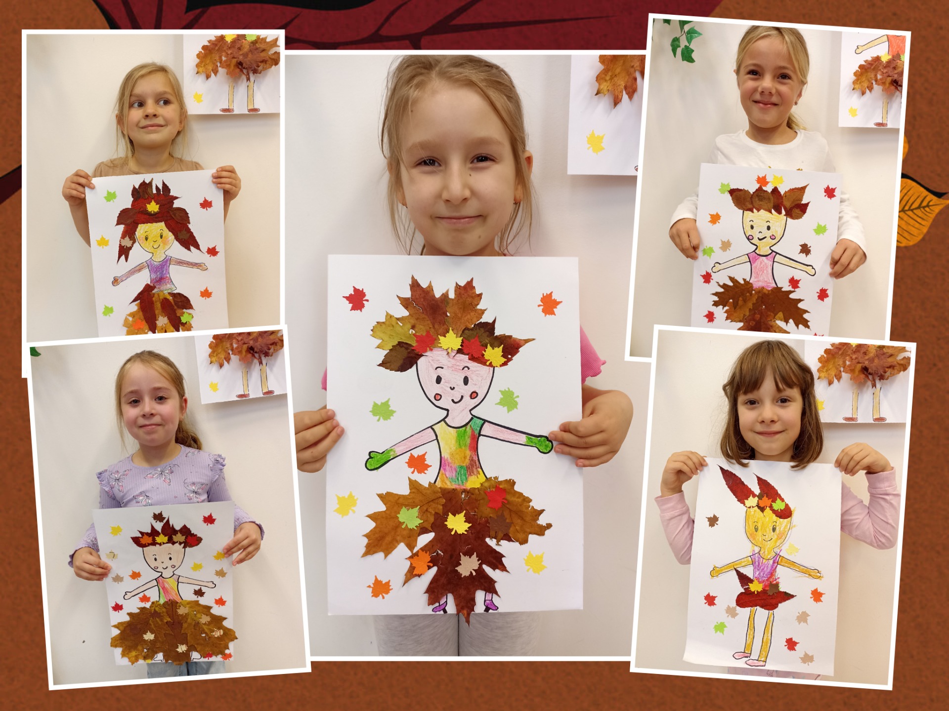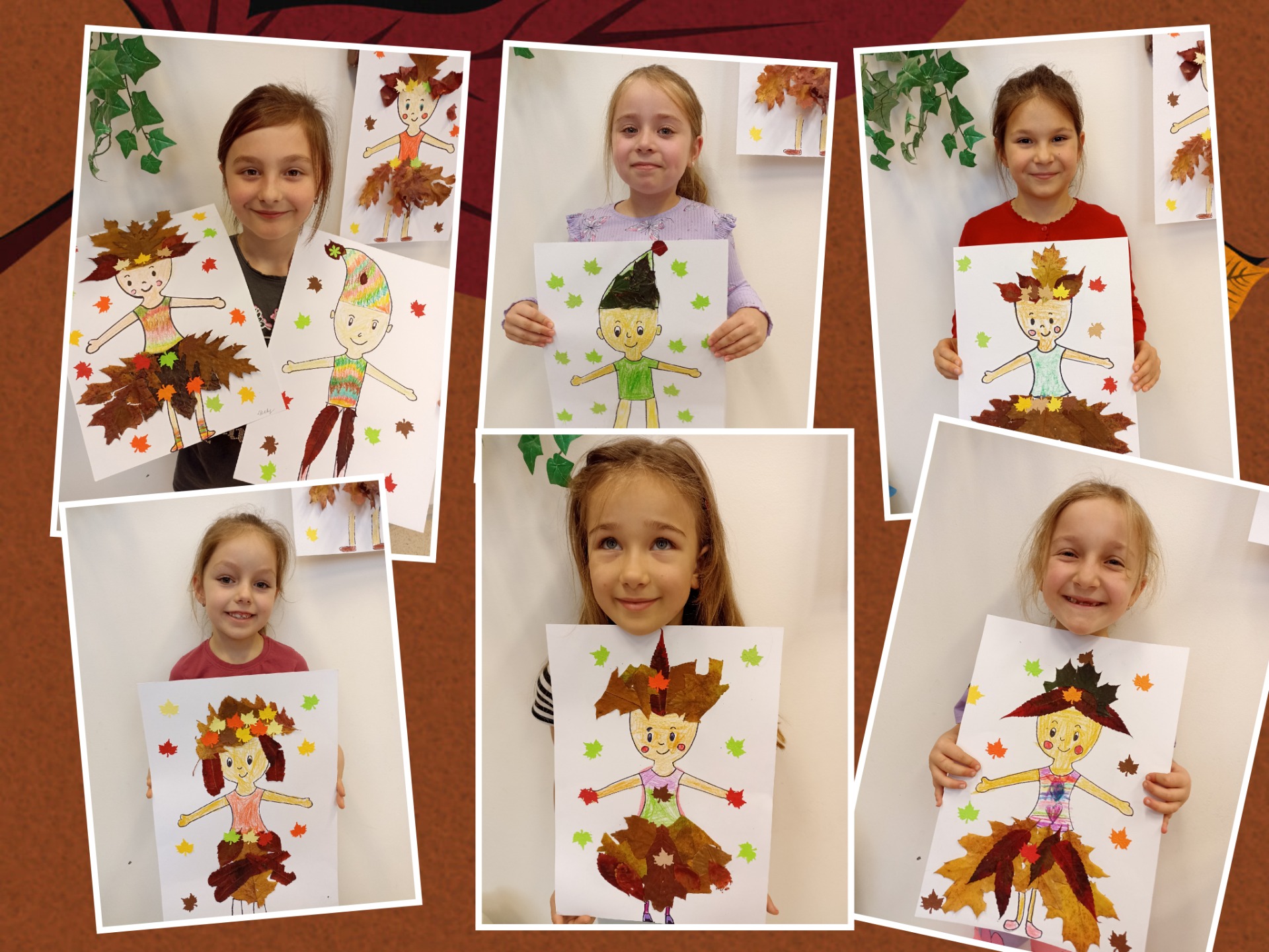 Lesní víly vyrobené s nasbíraných krásně zbarvených podzimních listů.
