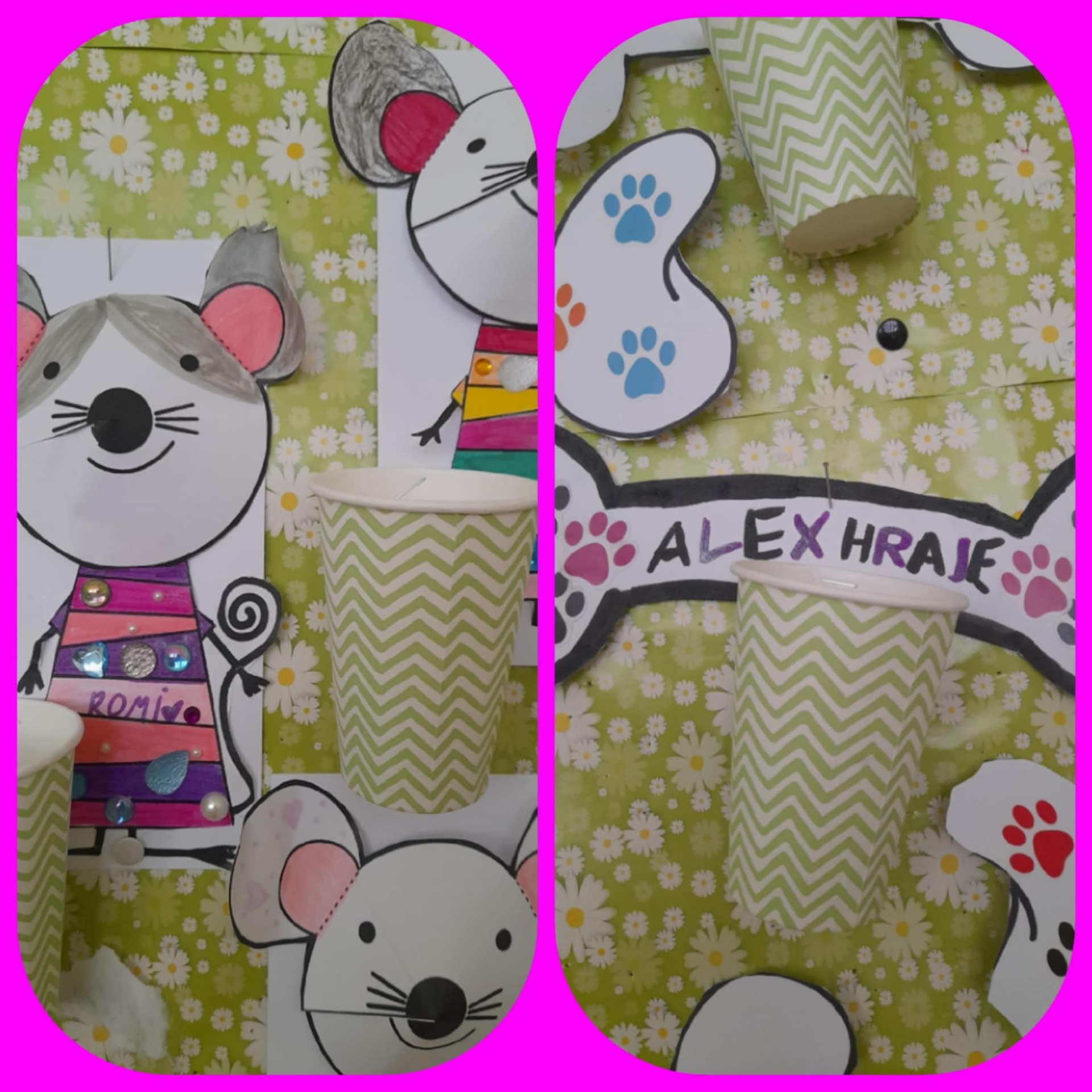 Kostičky a myšičky na celoroční nástěnku...kdo bude mít kelímek(mističku) plnou....
