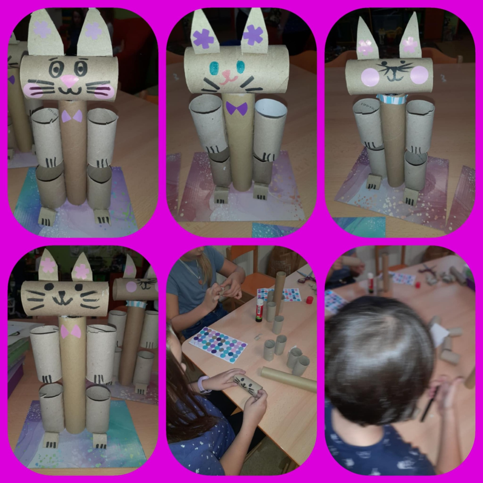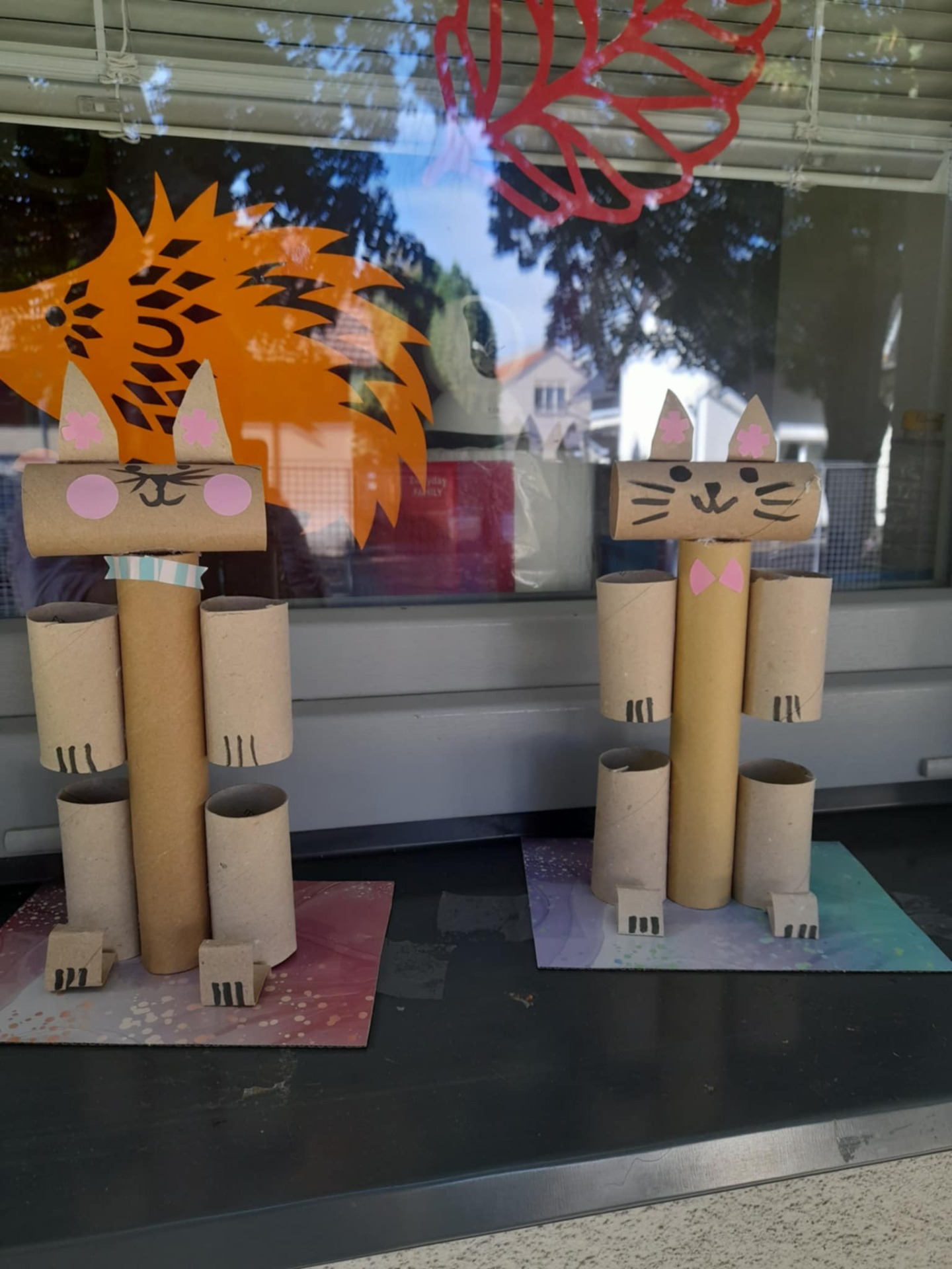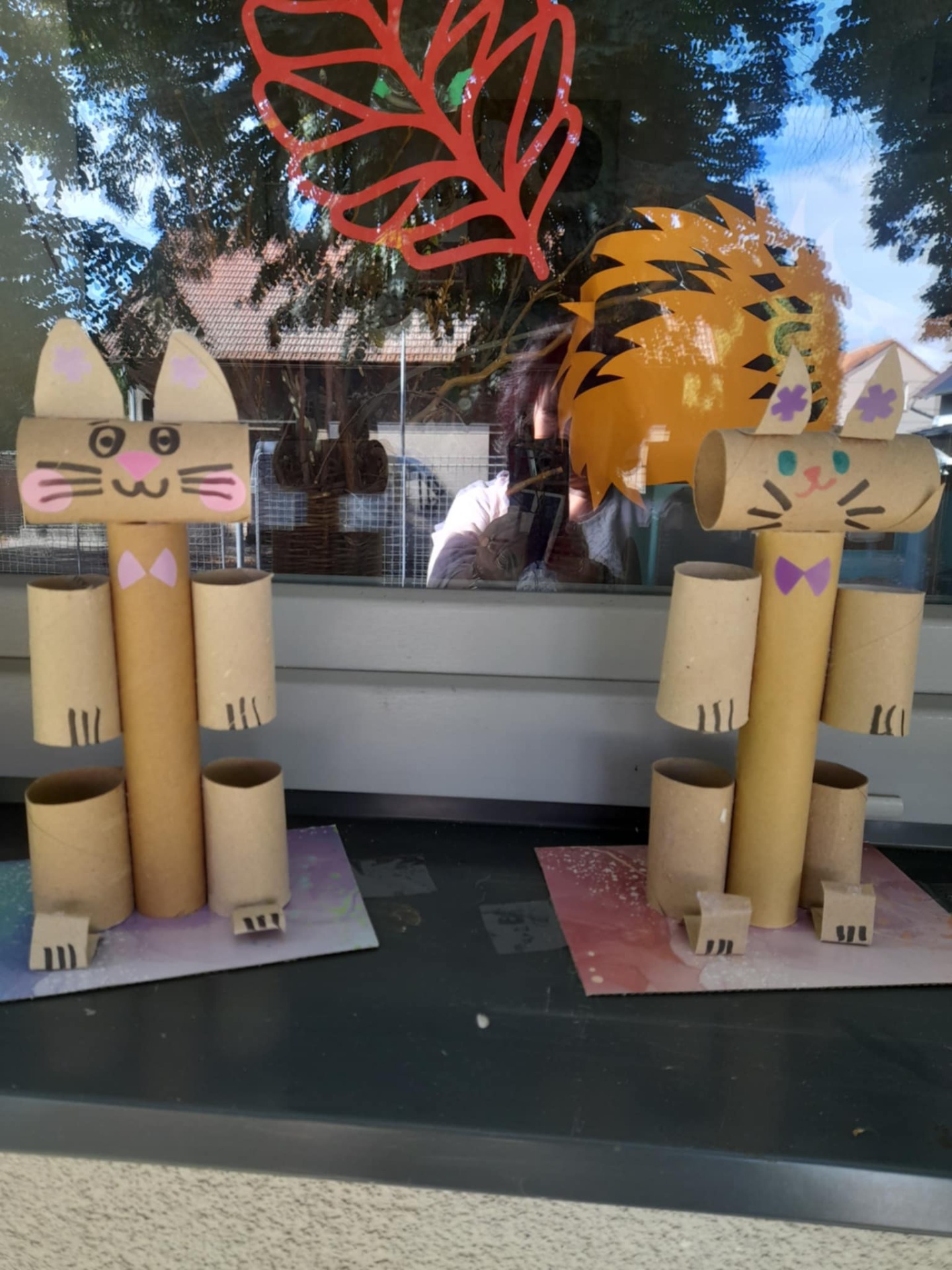 Zkoušíme vyrobit kočičku z ruliček...už zdobí venku okno