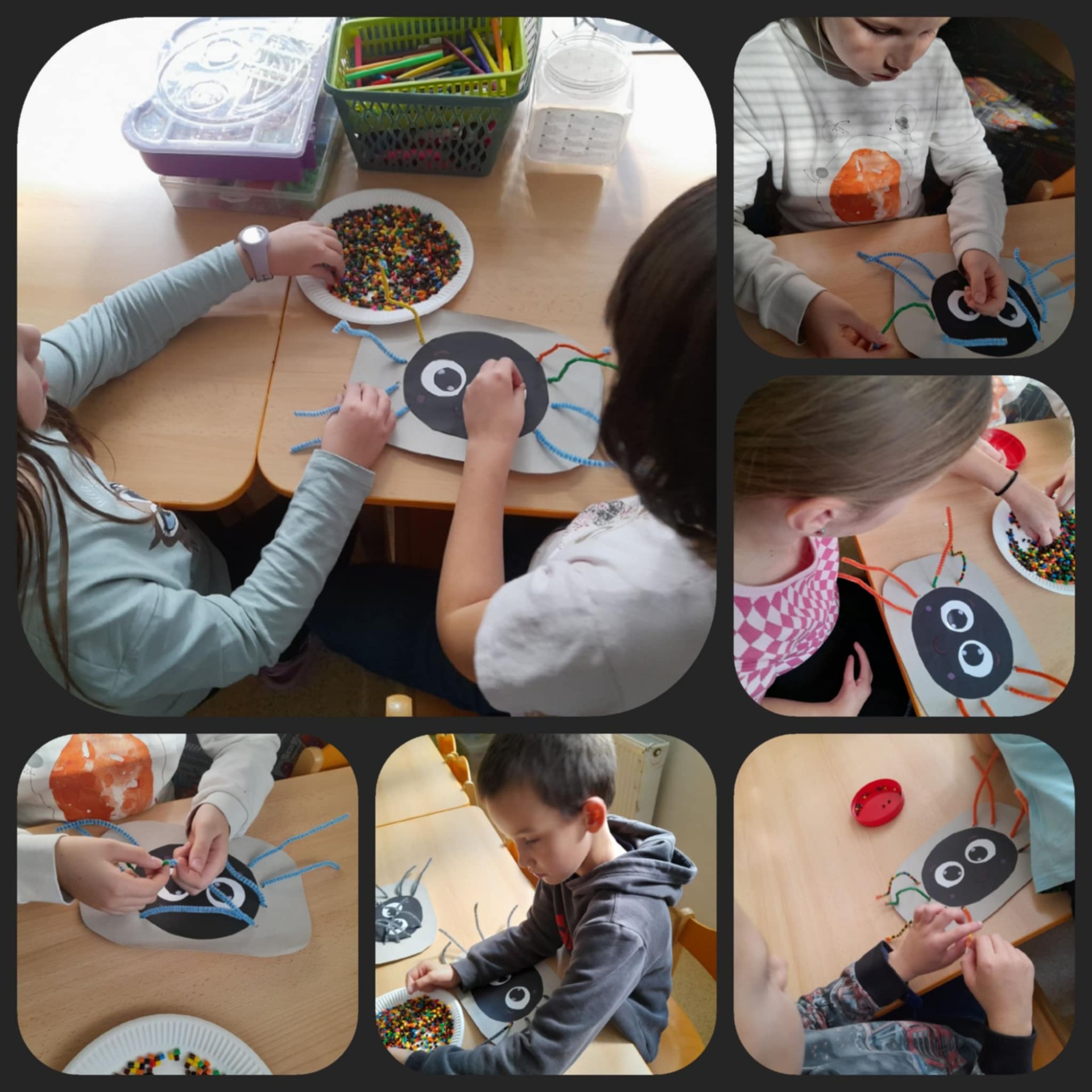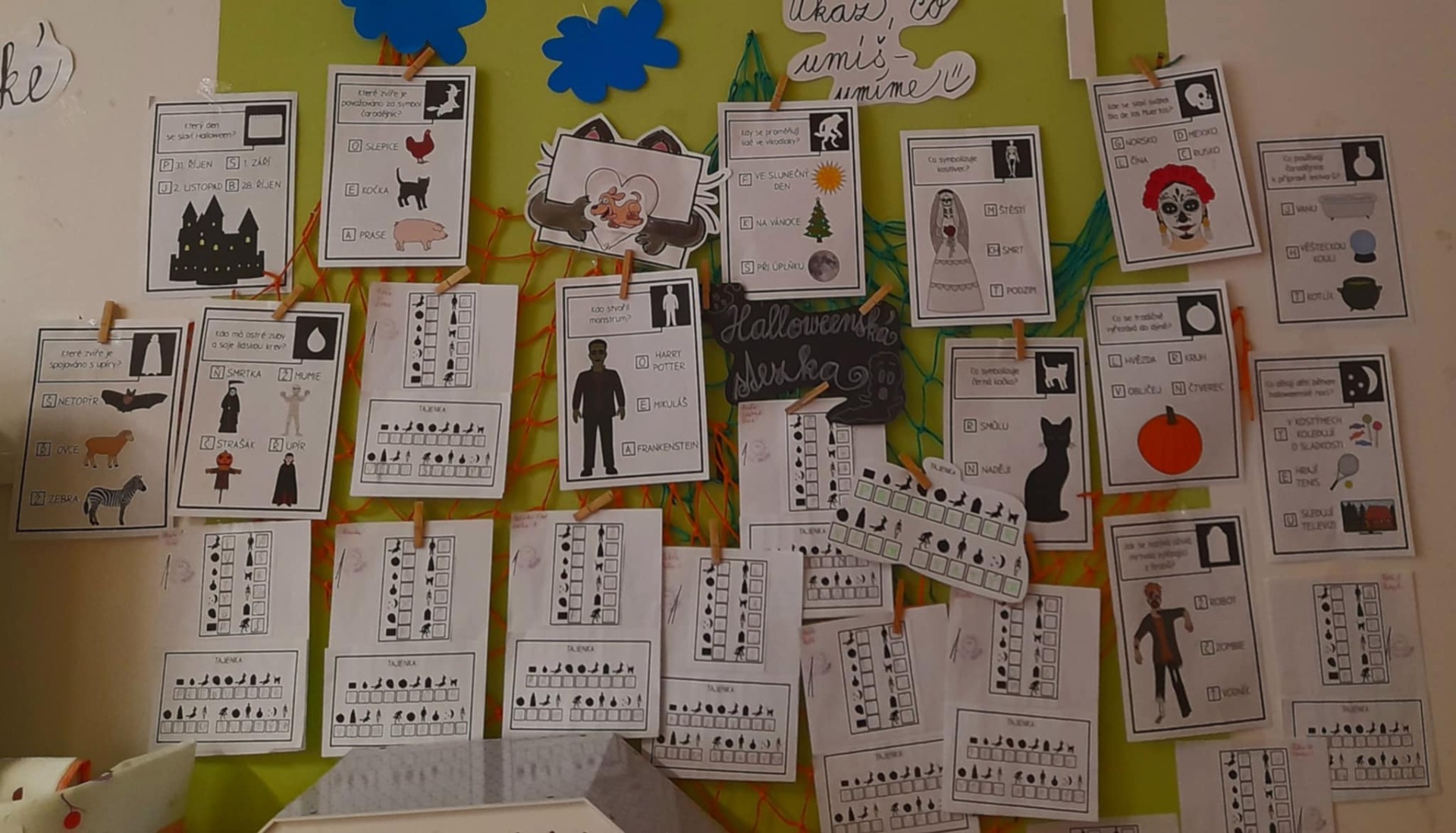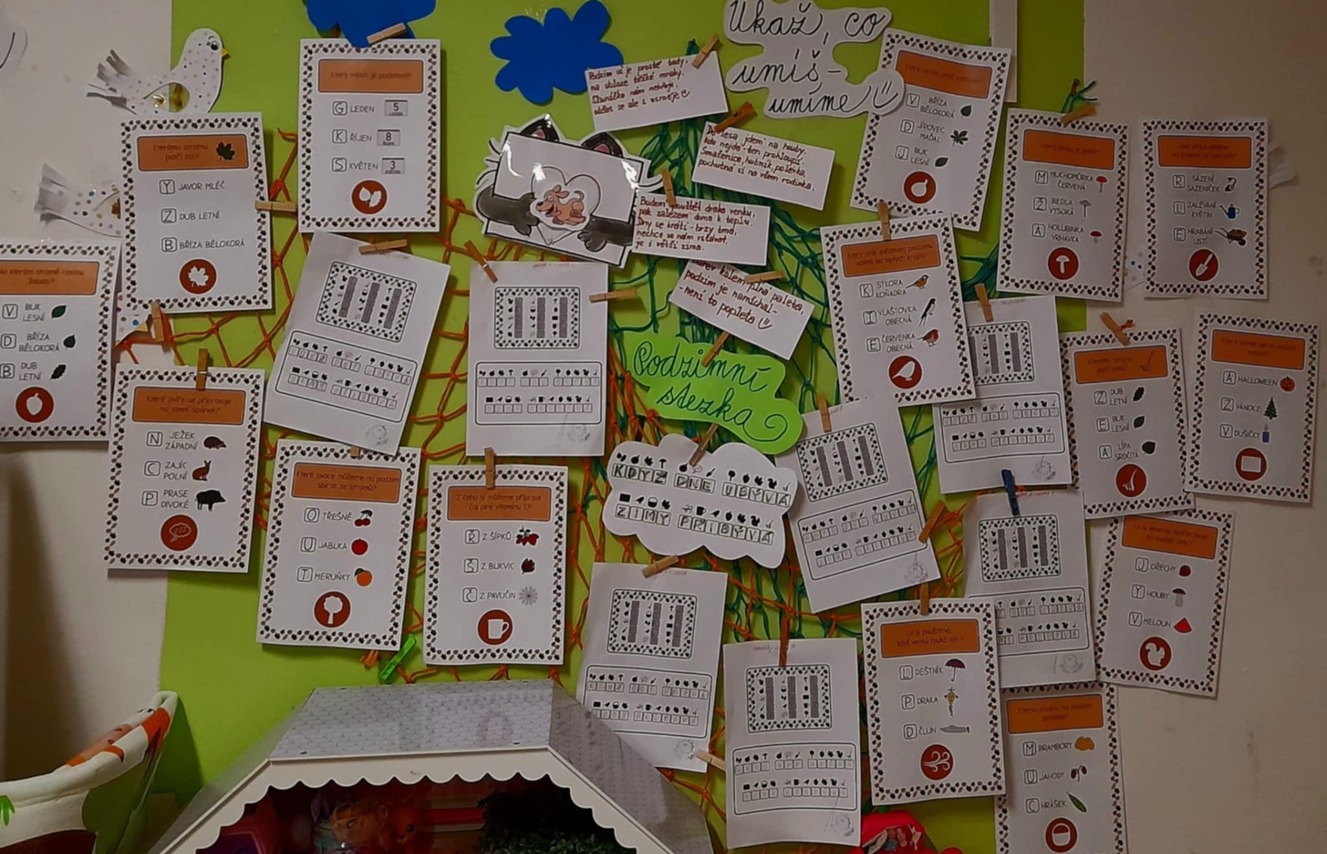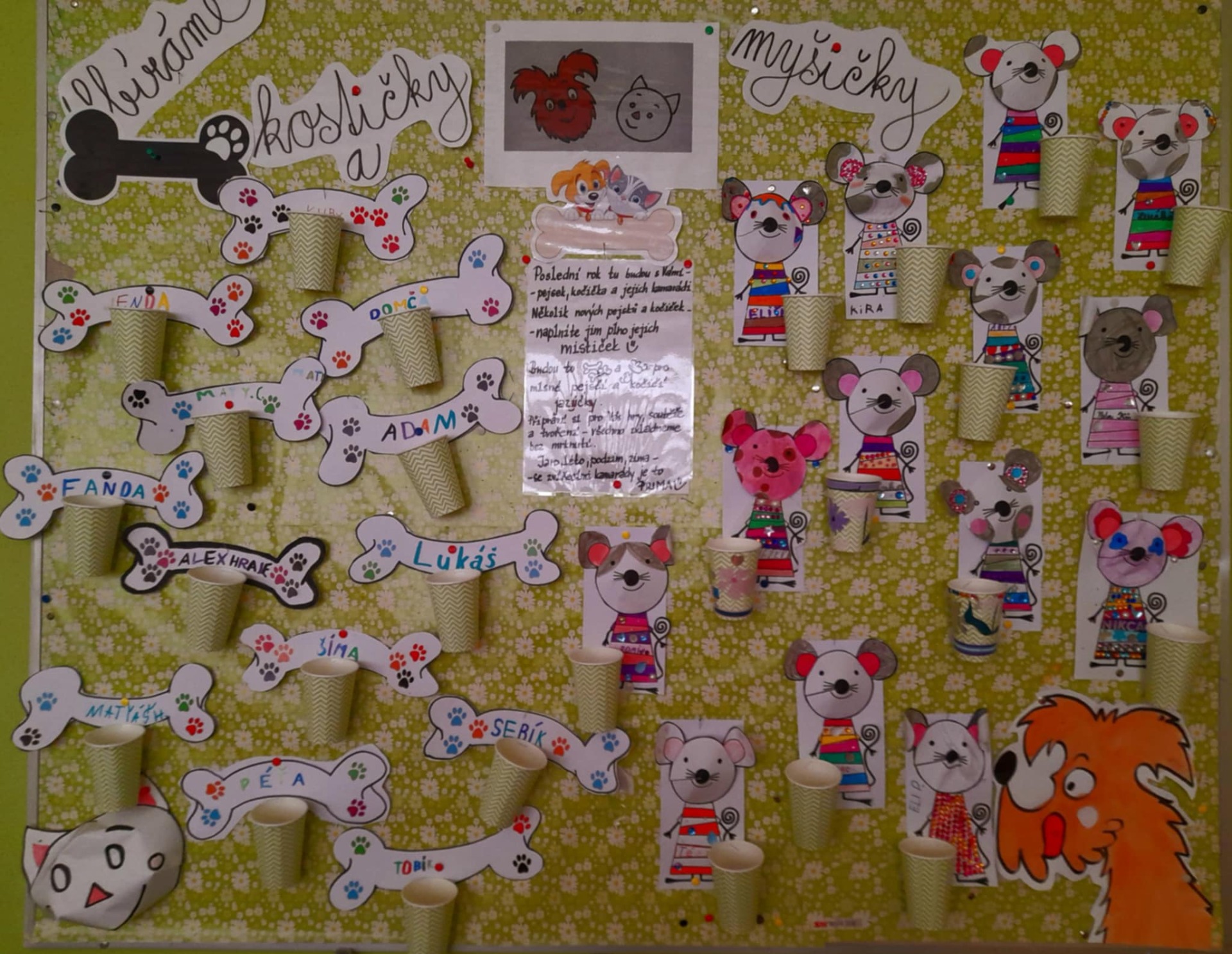 Protože jsme již zase o rok starší, máme delší vyučování, tak nám nástěnka trvala trochu déle - zvládli jsme ji a už naplňujeme kelímky(mističky) kostičkami a myšičkami za tvoření atd.....