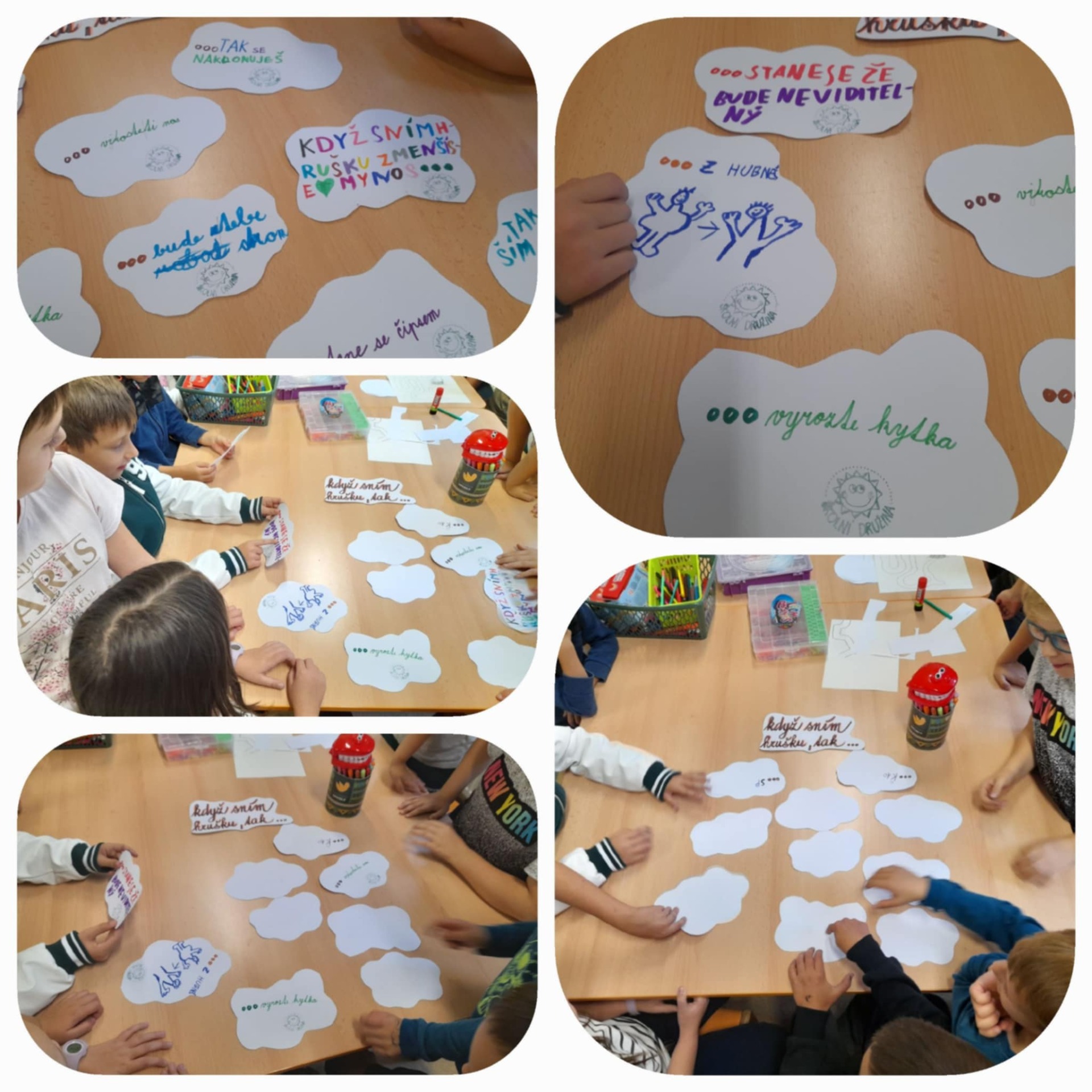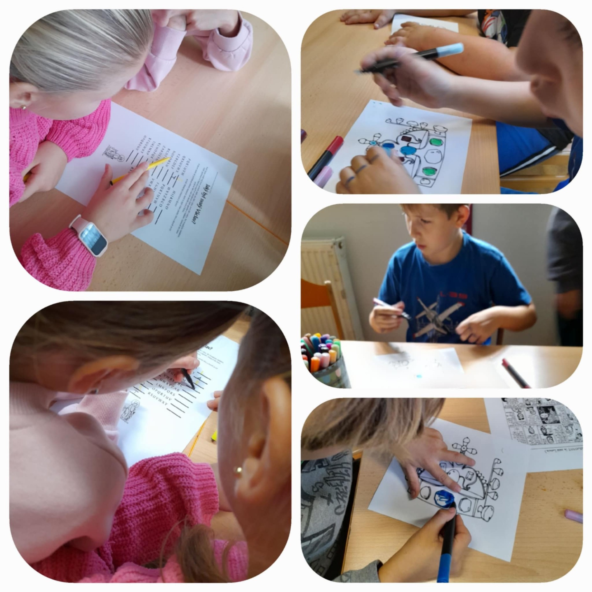 Vše jsme zvládli a splnili ..... začali čtvrťáčci, kteří byli v družině dříve...po chvíli plnili úkoly třeťáčci .... pracovali ve dvojicích i samotatně.... tajenka vyluštěna "Když dne ubývá, zimy přibývá"