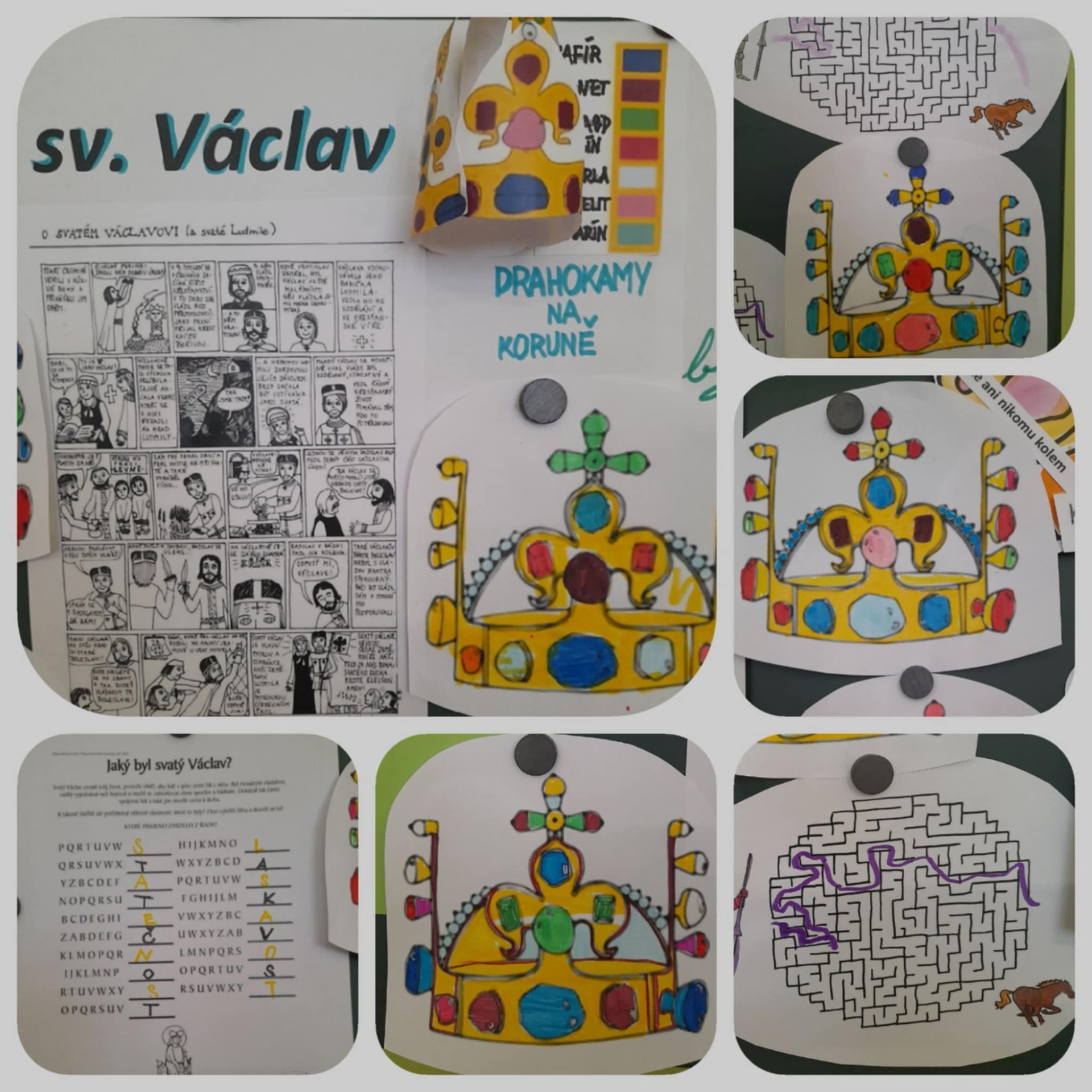 Čtvrťáčci se pustili do luštění, jaký byl sv.Václav a skupina třeťáčků vykreslovala korunu a seznámila se s drahokamy, které jsou na ni...nechybělo ani bludiště a čtení o sv.Václavovi